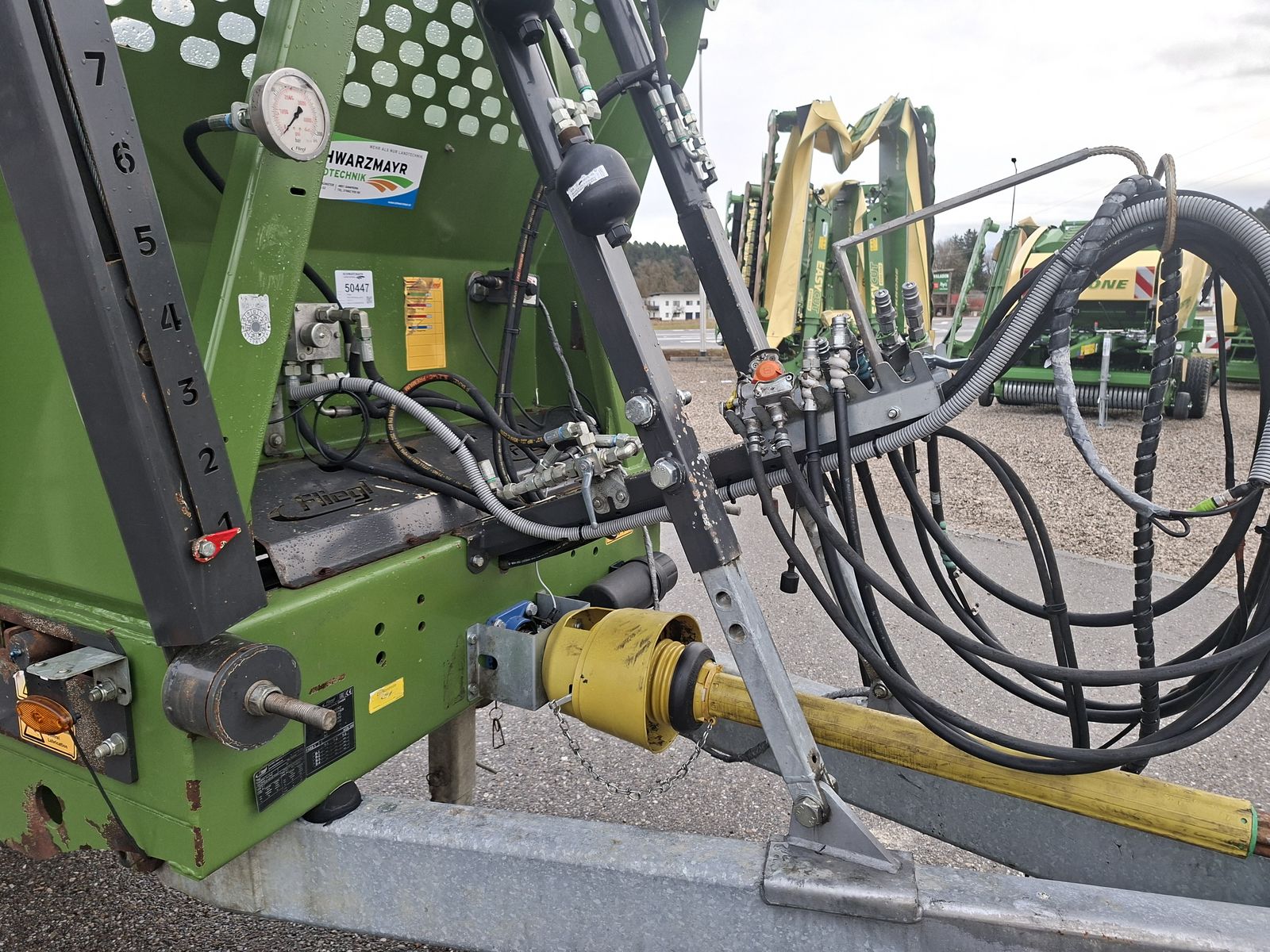 - Breitstreuaggregat: muck control für Streubreiten von bis zu 24 Meter 1800 mm Durchgangsbreite, 2 liegende Fräswalzen Ø 770 mm inkl. Stauschieber mit inliegender Führung für beste Abdichtung und hydraulischer Heckklappe