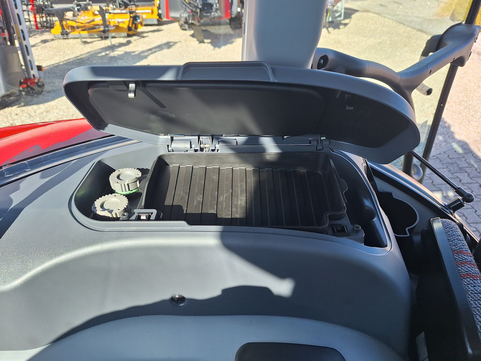- Komfortkabine mit mechanischer Kabinenfederung Klimaanlage Armarturenbrett mit digitaler Anzeige Aufstellbare Frontscheibe & aufstellbaren Seitenscheiben Freisichtdachfenster inkl. Sonnenrollo Beifahrersitz mit Gurt Innenspiegel Wisch/Waschanlage hinten Zigarettenanzünder & Aschenbecher Radio
