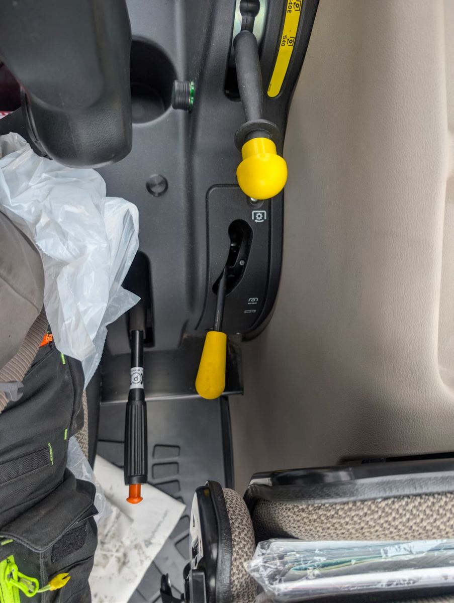 mechanisch gefederter Fahrersitz mit Armlehne und Gurt