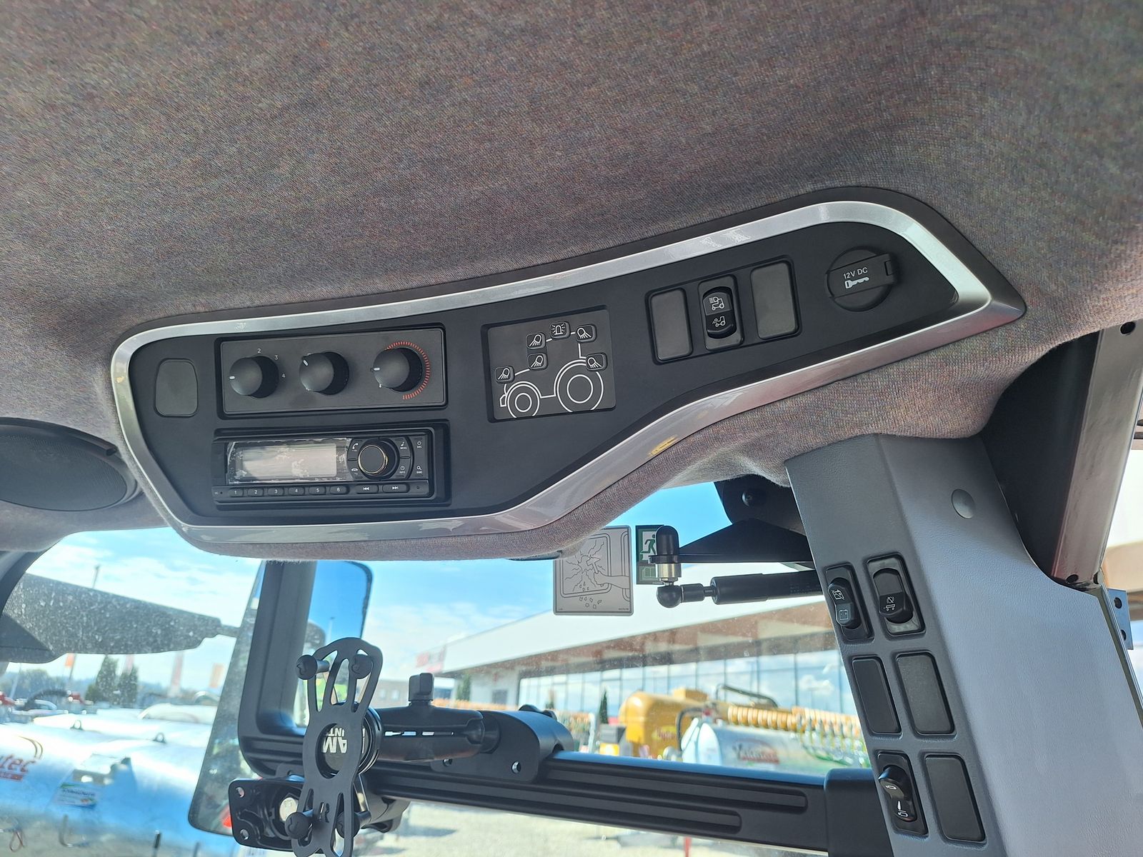 - Monitorhalterung am rechten Seitenfenster mit elektrischem USB Anschluss, Monitoraufnahme und Universalhandyhalterung