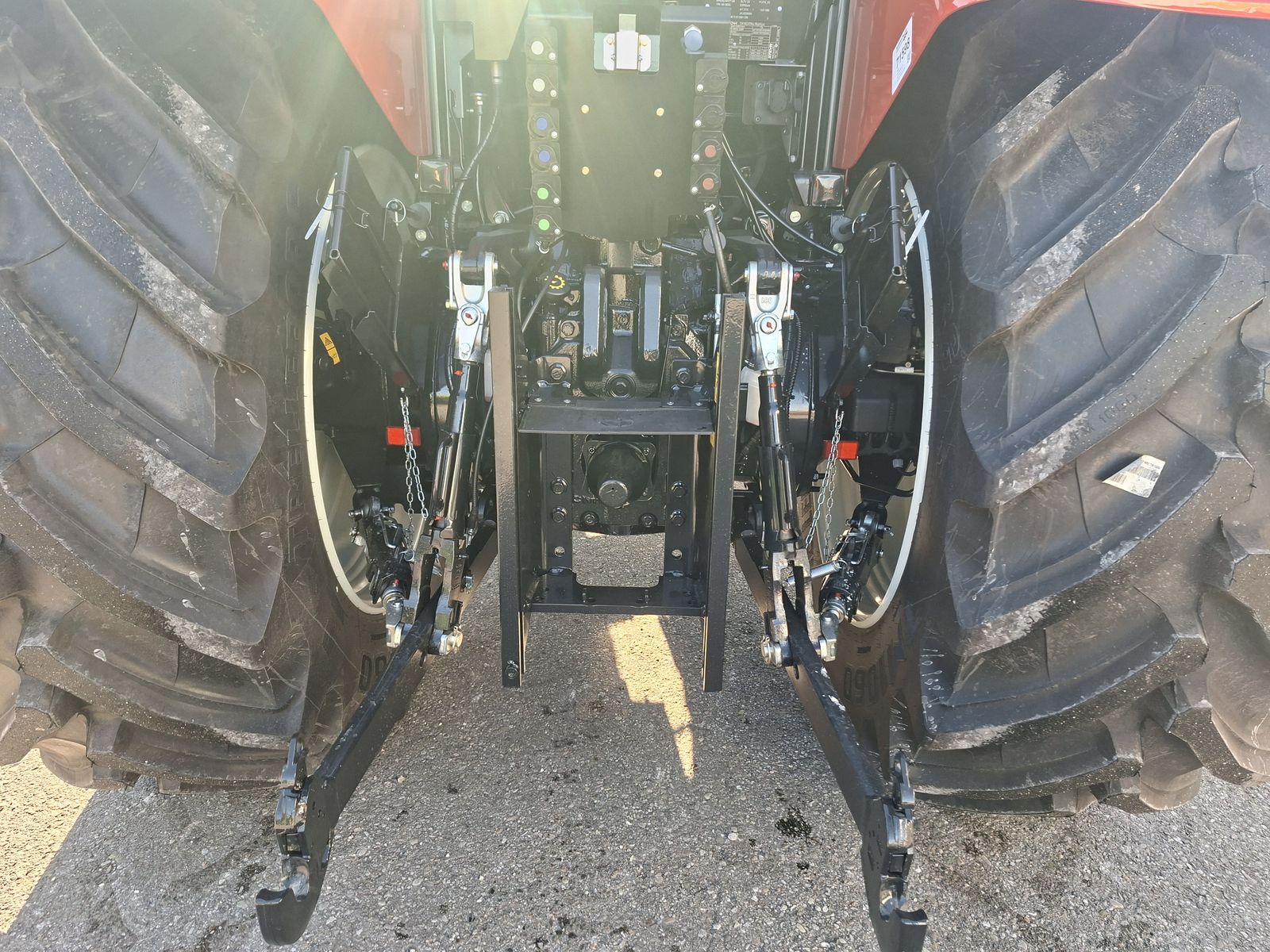 - mit Heckhubwerk Kat. 3 mit 2 außenliegenden Hubzylindern :e 100 mm und Schnellfanghaken (8647 kg max. Hubkraft) mit mechanischem Oberlenker