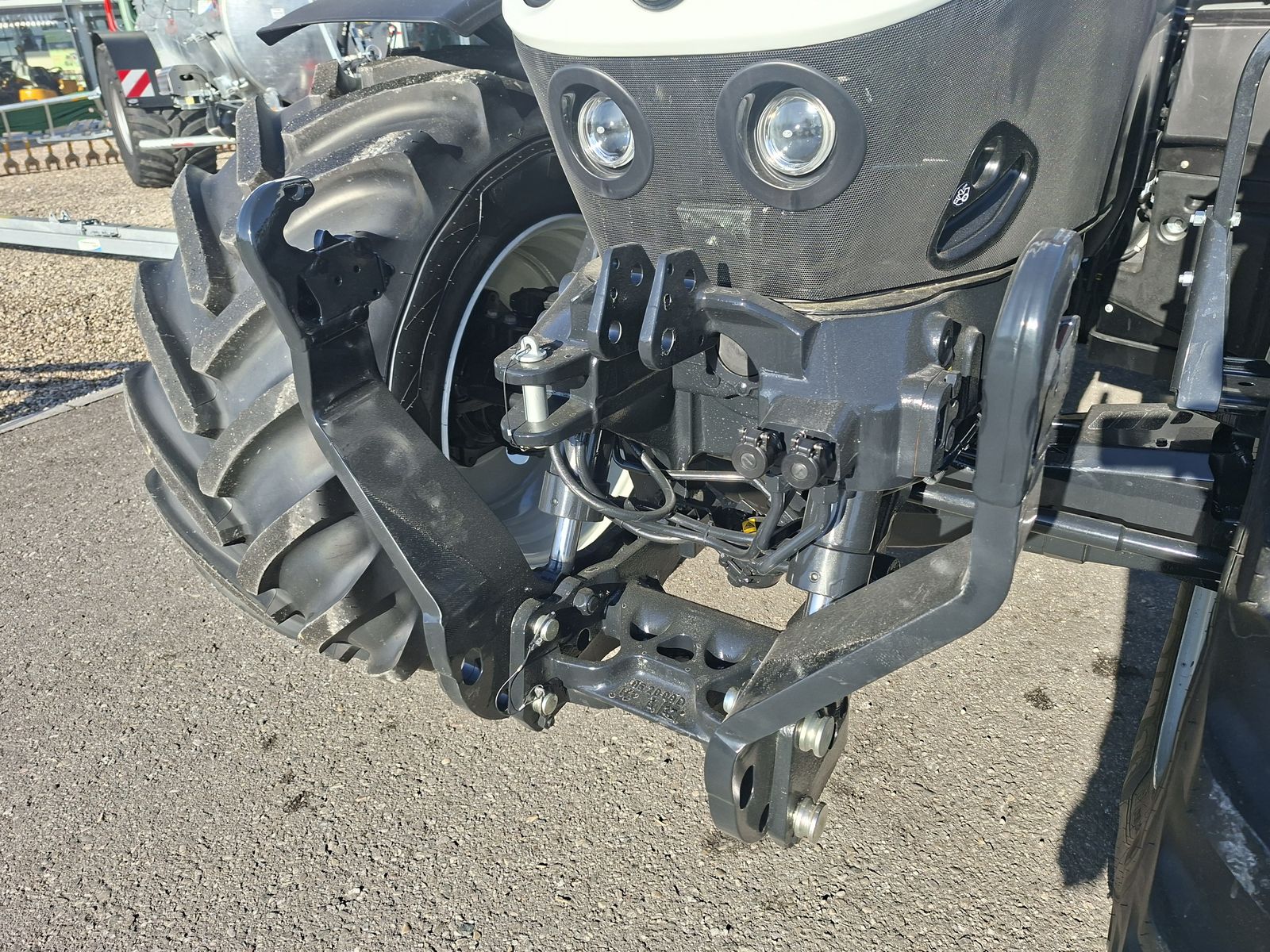 - mit Heckhubwerk Kat. 3 mit 2 außenliegenden Hubzylindern :e 100 mm und Schnellfanghaken (8647 kg max. Hubkraft) mit mechanischem Oberlenker