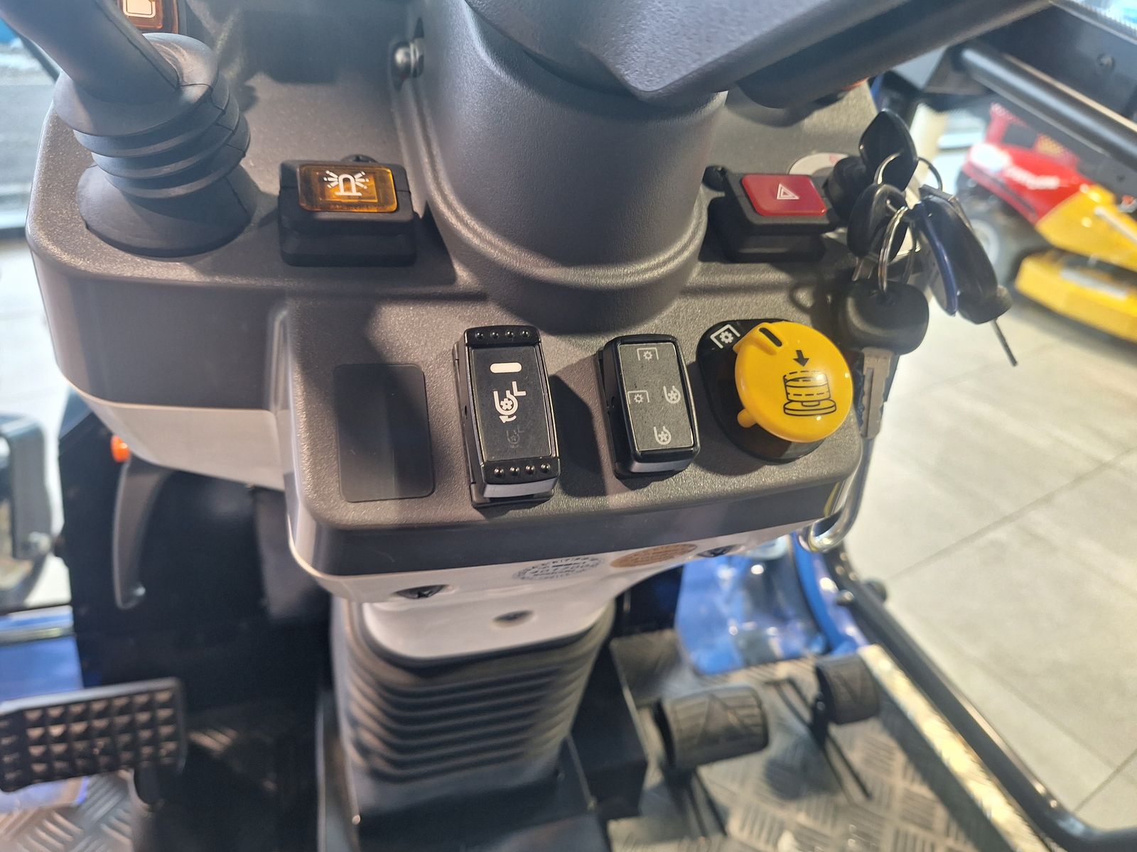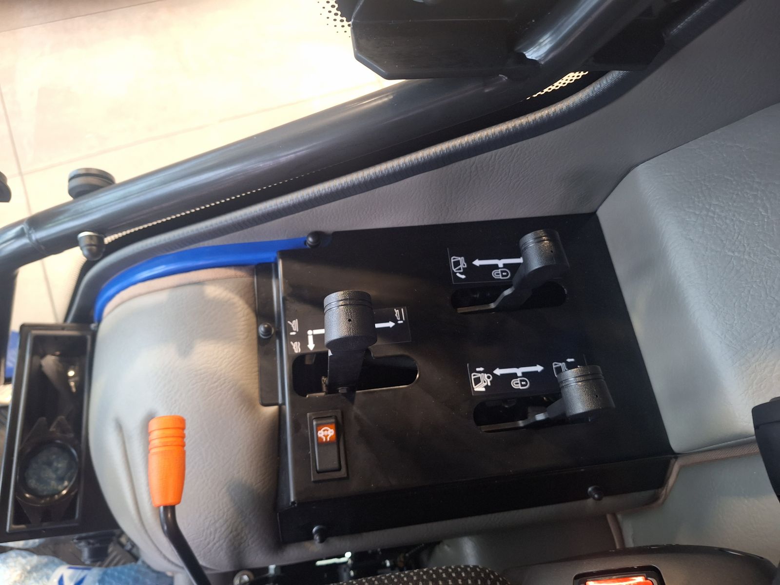 über drei Hydraulikventile auf dem rechten vorderen Kotflügel.