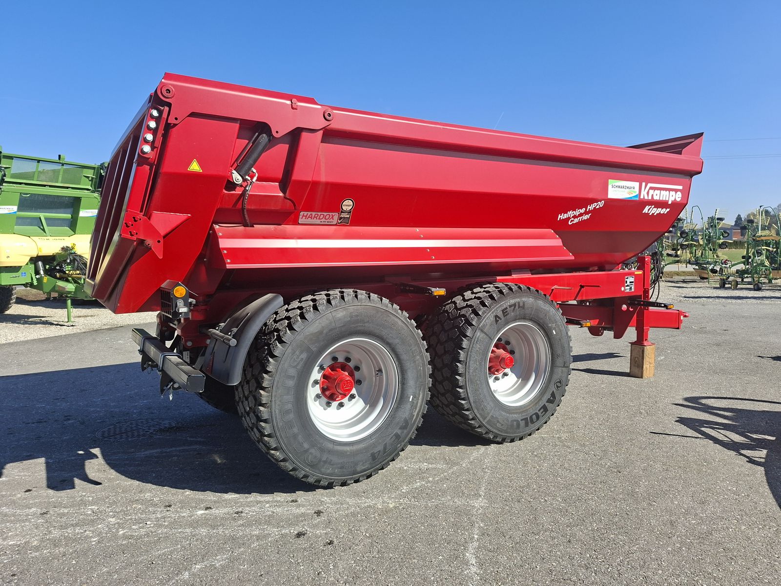 Lackierung im 2-Komponenten-Lack ganz in Krampe-Rot ähnlich RAL 3002