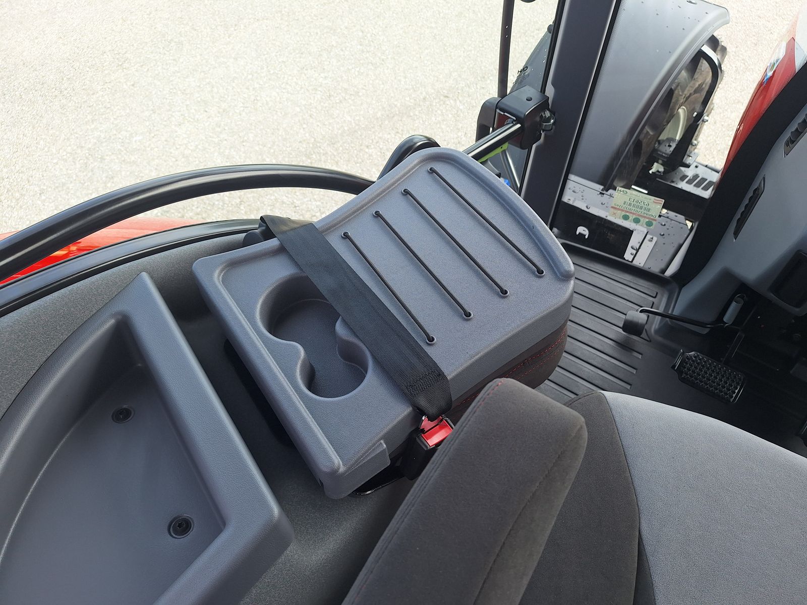 - Luftgefederter Grammer Dual Motion Fahrersitz mit Stoffbezug, schwenkbarer Rückenstütze, Gurt und passiver Belüftung
