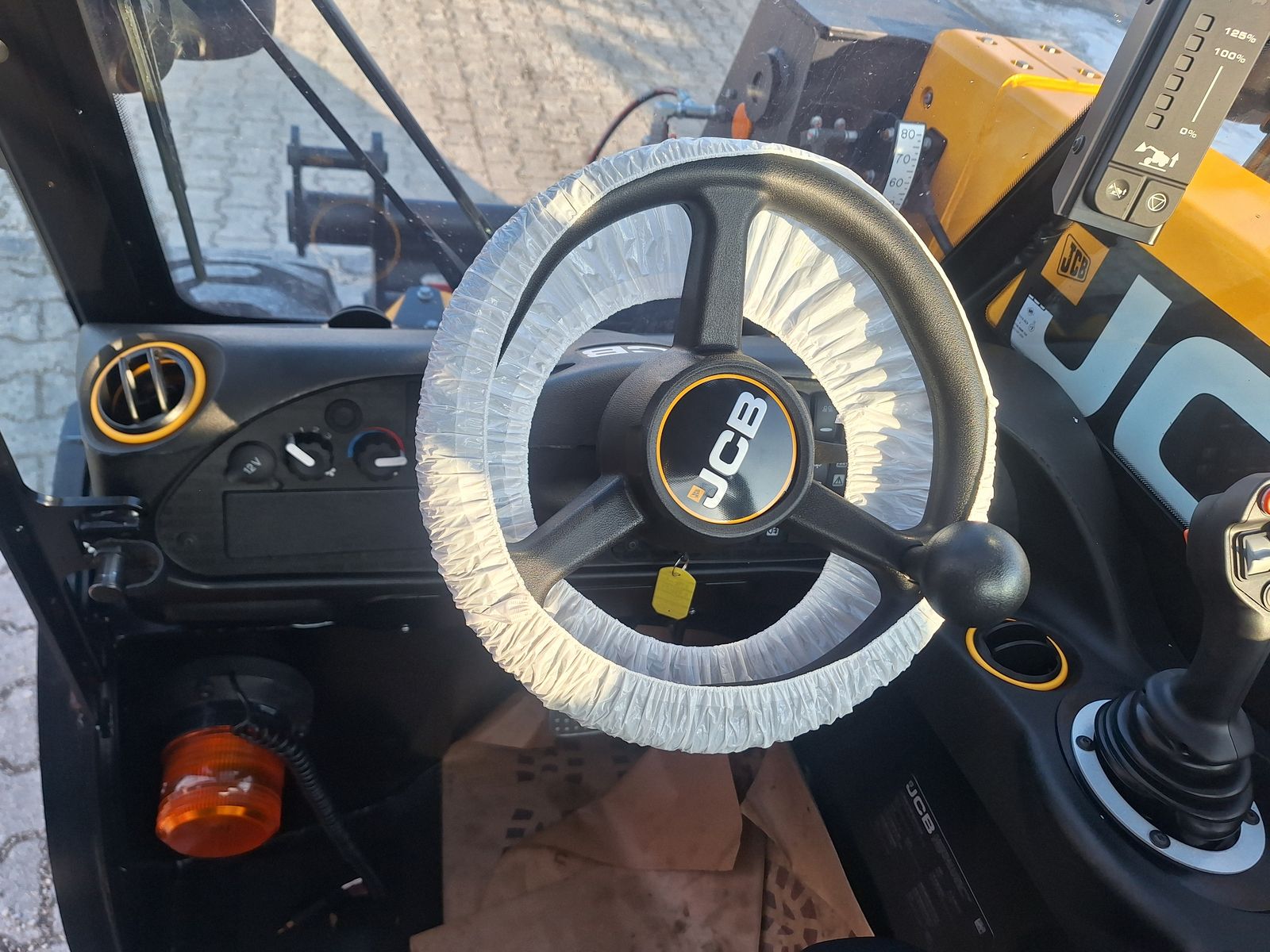 540C061 Vollverglaste Kabine mit zweigeteilter Türe Scheibenwischer Frontscheibe, Scheibenwischer Dachscheibe, Joystick in der Armlehne, digitale Anzeige für Dieselfüllstand, Maschinenstunden, Nothammer, Heizung, Kabinenbeleuchtung innen